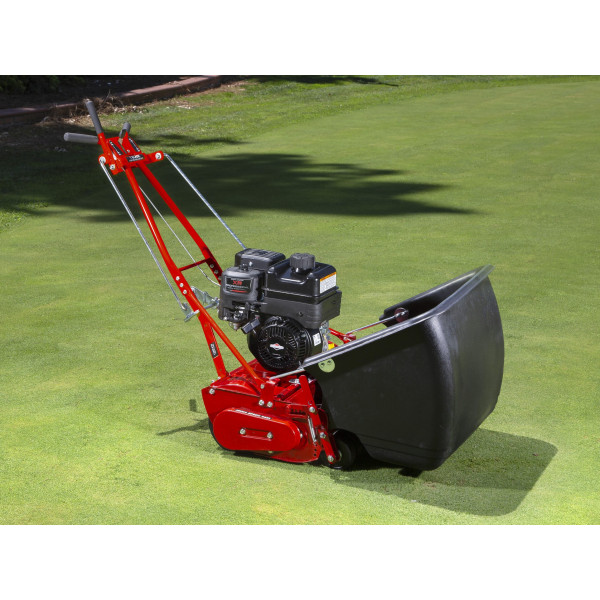 Les tondeuses McLane Greens sont entraînées par courroie et chaîne, et utilisent un cylindre de coupe et une contre-lame traités par induction thermique, offrant une qualité supérieure et une grande durabilité.